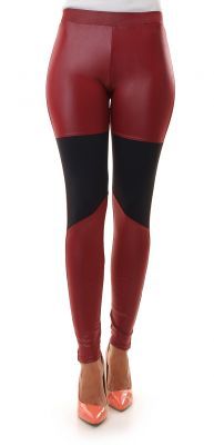 Seksowne, obcisłe legginsy z kontrastowymi wstawkami na kolanach. Rurki wykonane są z materiału a'la skóra i mają metaliczny połysk. Getry posiadają w pasie szeroką, elastyczną gumkę.