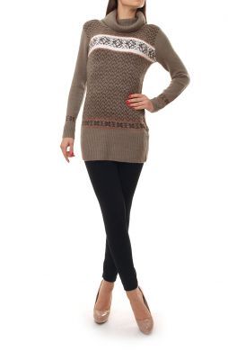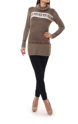 Bardzo ciepły i mięciutki golf. Wzorzysty długi sweter, który może służyć także jako tunika. Dół i rękawy zakończone elastycznym ściągaczem. Dzięki dodatkowi wełny idealnie sprawdzi się w zimne i mroźne dni. Bardzo wygodny i przyjemny w dotyku.