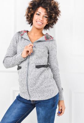 Ciepły kardigan / bluza melanżowa, z długim rękawem. Z tyłu kaptur z materiałem w kratkę od wewnątrz. Zapinany na długi zamek z przodu, u dołu ściągacz. Imitacja kieszeni. Kołnierz stójka. Miękki środek. Ciepły i przyjemny materiał o lekko melanżowej strukturze. Dostępny w...