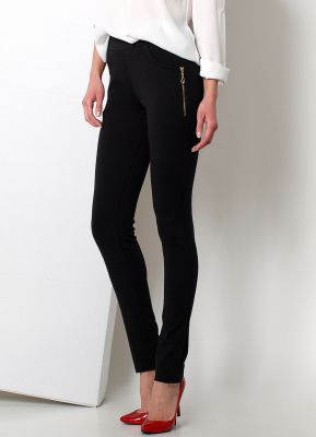 Czarne rurki, w pasie gumka, kieszenie na zamek z przodu, klasyczny krój.
