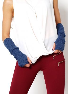 Długie rękawiczki bez palców (z oddzielnym otworem na kciuk). Wygodne mitenki zdobione delikatnie wypukłymi warkoczami. Ciepły otulacz na ręce, chroniący dłonie i przedramiona przed zimnem i mrozem. Zakończone ściągaczem, dzięki czemu dobrze się dopasowują i trzymają na...