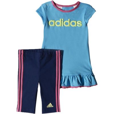Ten sportowy, niemowlęcy zestaw dla aktywnych dziewczynek ma urokliwe, siatkowe falbanki pod spodem wierzchniej warstwy. Wykonany z bawełny, ma legginsy z domieszką stretchu, ozdobione trzema paskami.