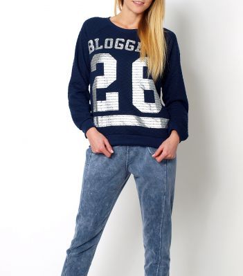 Pikowana bluza z nadrukiem w srebrnym kolorze, luźny fason, dekolt okrągły , rękawy i dół zakończone ściągaczami.