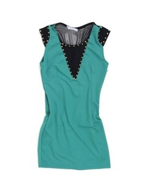 Piękna zmysłowa sukienka z tiulowym wcięciem w kształcie trójkąta na plecach. Zdobiona złotymi ćwiekami na barkach. Z boku zapinana na dyskretny zamek. Materiał miękki i rozciągliwy. Dopasowana, idealna na każdą okazję. Długość mini / midi.